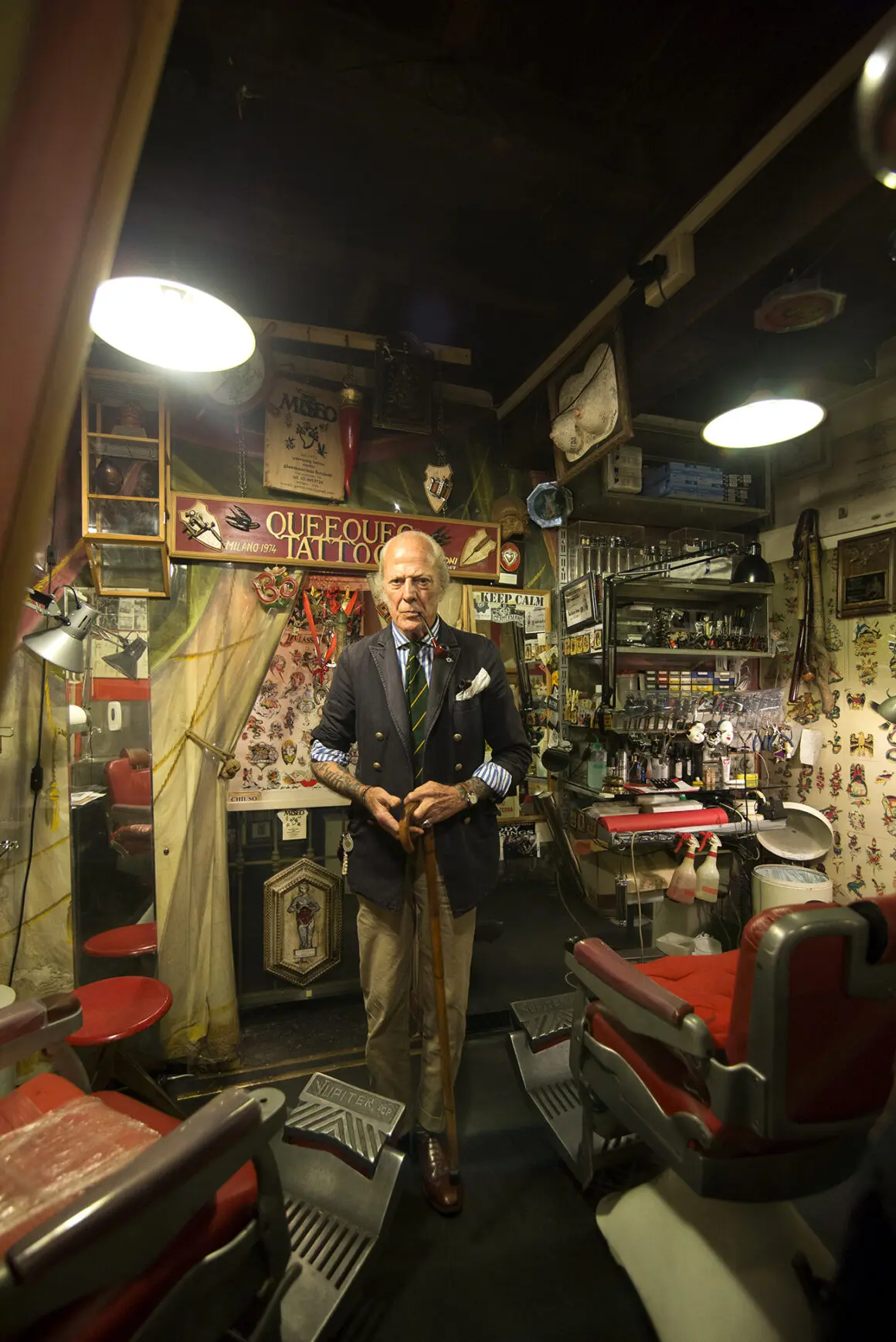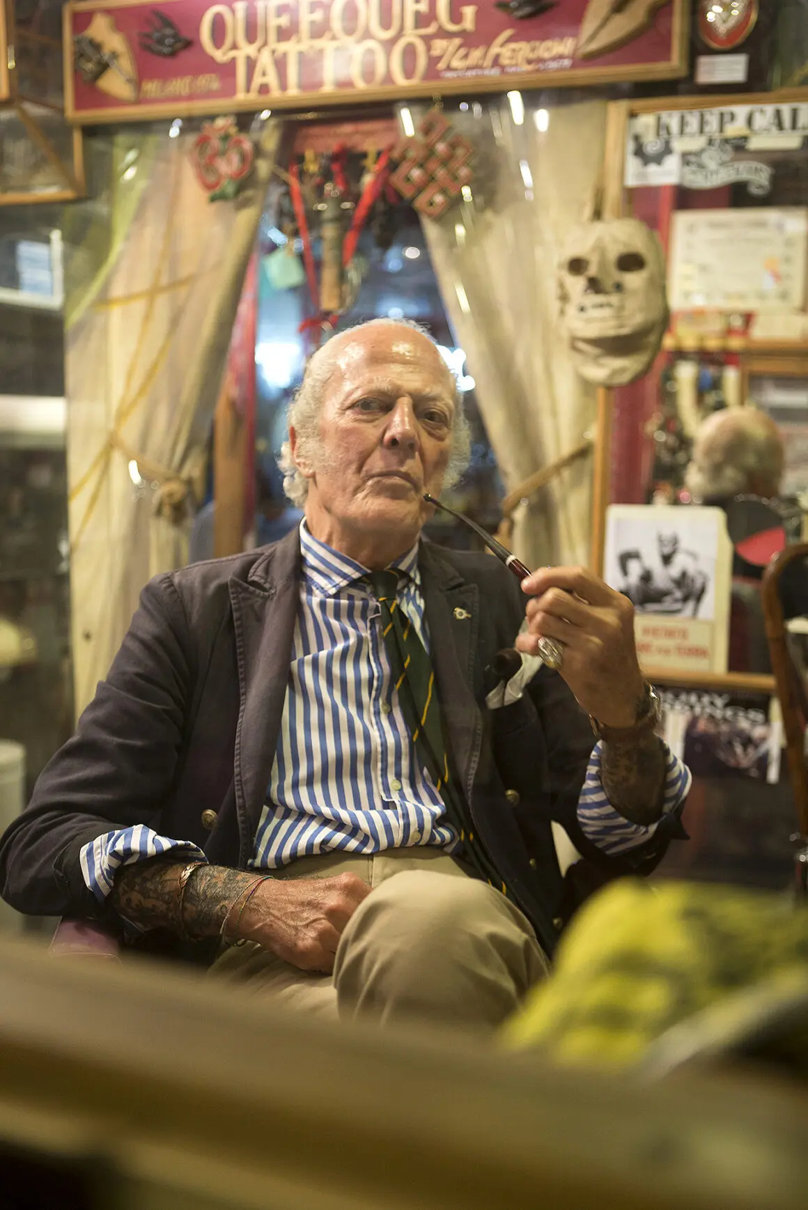Fercioni was far more than an avant-garde tattooist: he was a world-builder. “I’ve always been a dandy, with three great passions: sailing, theater, tattooing,” he once told us, speaking of himself. And so he remained: a gentleman with an unmistakable style.