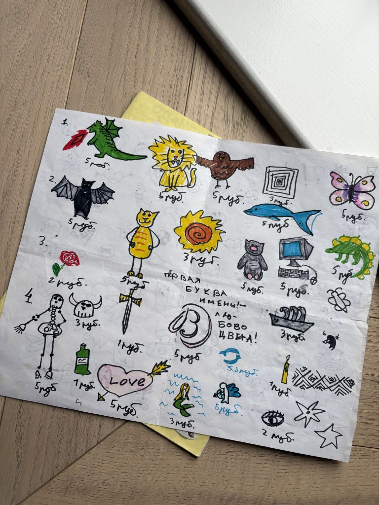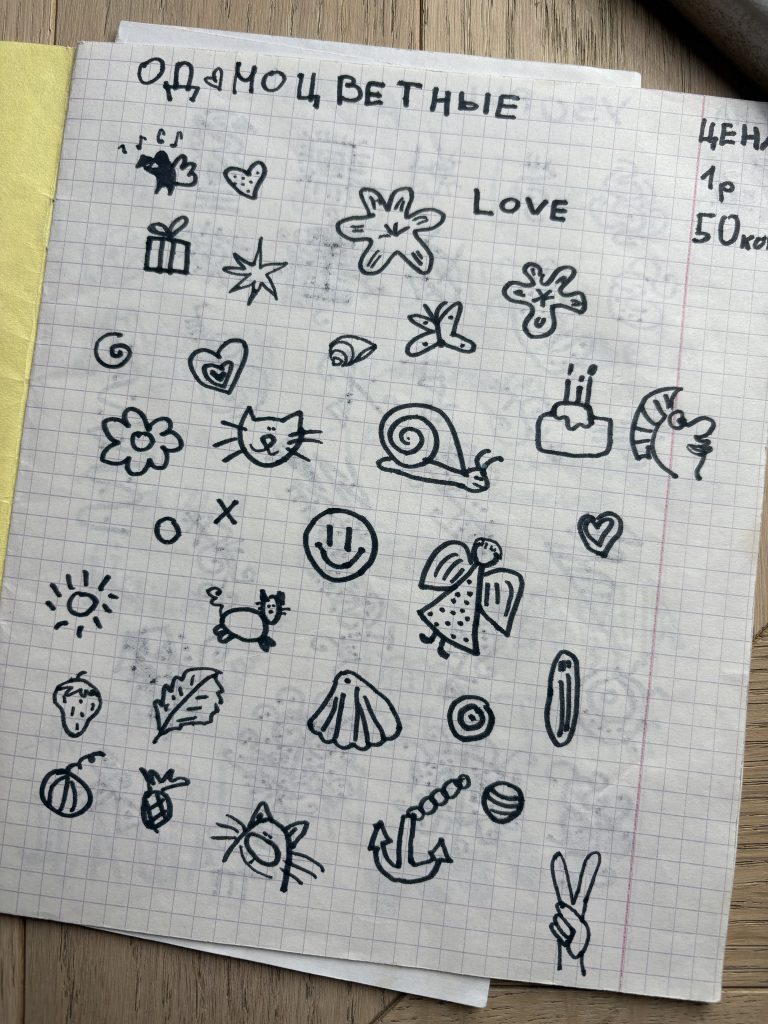 While V was tattooing us, she told us the story of how, when she was seven years old, she drew sheets of tattoo flash when she was at school. Perhaps her career was destined from that moment. We joked that she should hold a flash day to tattoo those designs – and now that we’ve seen them, we’re in