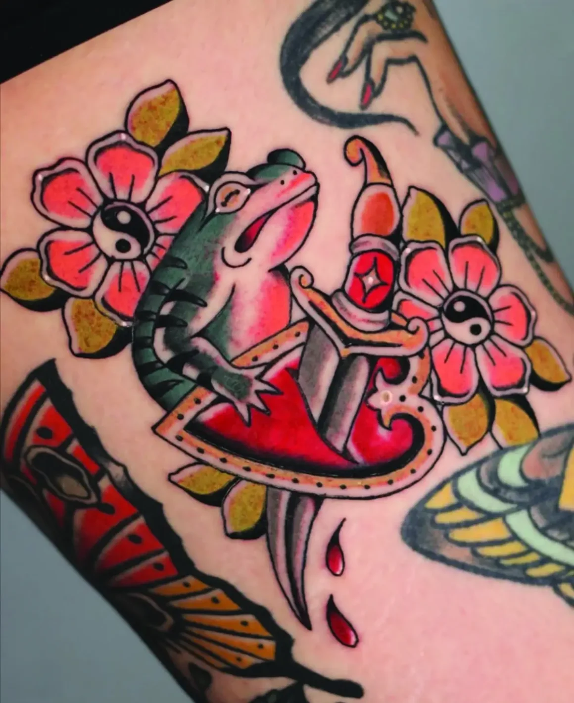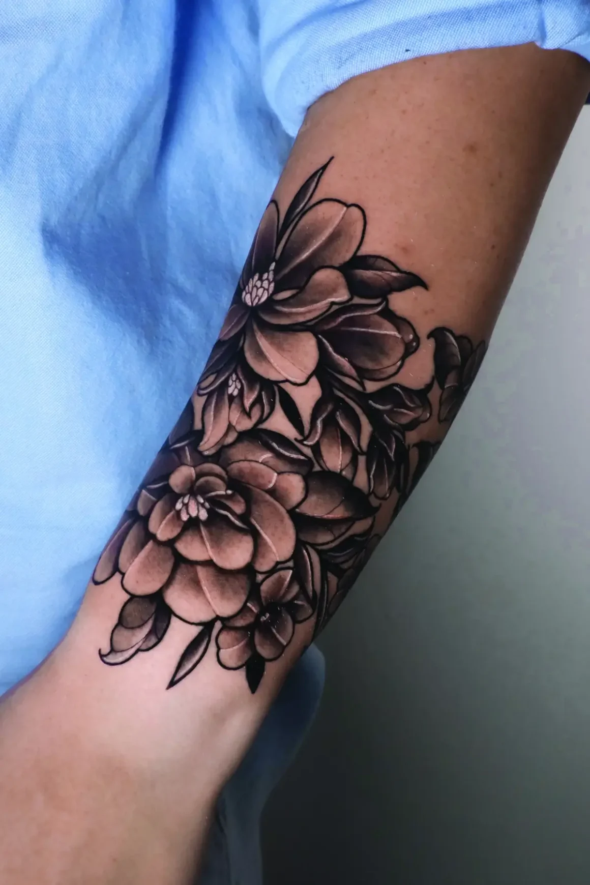 The other artists in residence had friendships or professional relationships with Monroy or Morales before joining the shop, but each filled a gap in Forget Me Not’s roster. From Estefania Arias’ micro-realistic botanicals to Huertas’ bold neo-traditional works, Tilde’s blackwork materials, and Morales’ traditional designs, there isn’t a tattoo you couldn’t get at Forget Me Not.