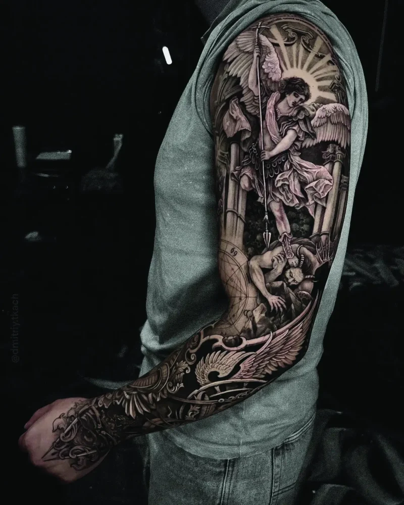 “I really enjoy this kind of lifestyle,” Tkach says of how these overlapping interests influence his tattooing. “It’s both aggressive and romantic. There’s a lot of drive and passion in it… I don’t go for unnecessary brutality or violence, but there’s always a hint of passion and a dark vibe in my work.”