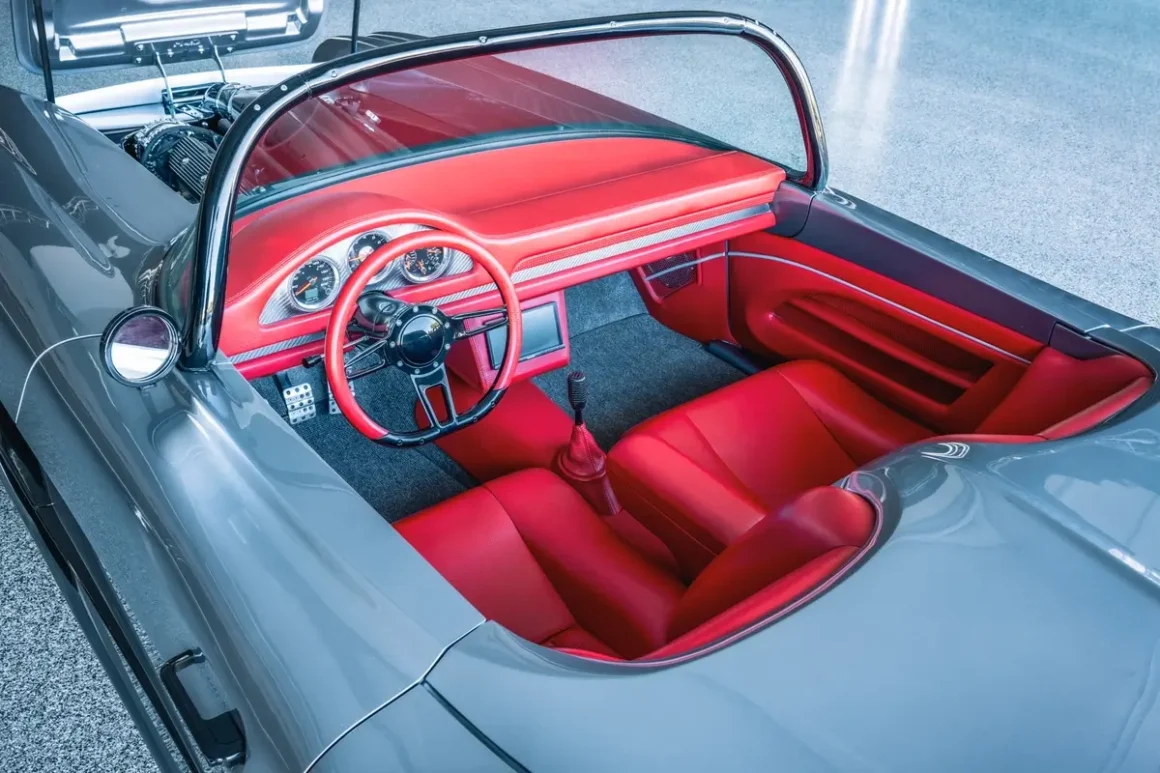 Inside, Shope ensured the car offered comfort as well as style. The cabin was stretched to comfortably accommodate taller drivers, a thoughtful touch. Ron Mangus crafted the full custom leather interior, which includes a redesigned dash, upgraded instrumentation, and a Bluetooth stereo system to bring modern convenience into the classic cockpit. For all the custom craftsmanship involved in the build, the car still proudly retains its original VIN tag, maintaining a direct connection to its 1961 heritage.