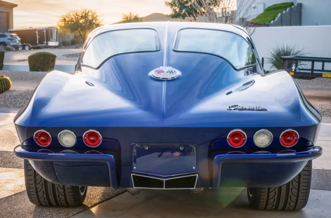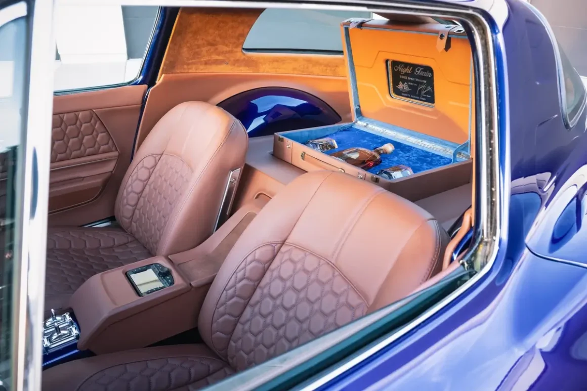 One of the build’s most memorable touches is found in the rear: a removable, custom-built suitcase that houses a display case complete with a rare bourbon, Versace glasses, and a signed metal display plate. It’s a detail that captures the spirit of the entire build—luxurious, daring, and unlike anything else on the road. Like the convertible, “Night Train” retains its original 1963 VIN tag, honoring the legacy of one of the most iconic Corvettes ever produced.